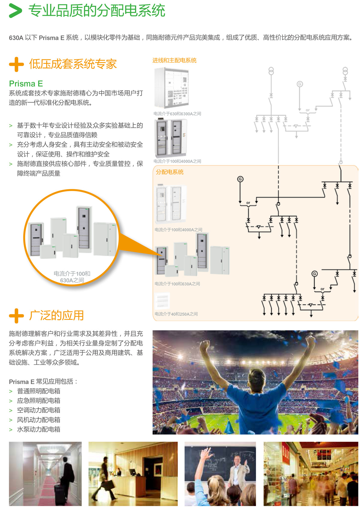 Prisma E配电箱是施耐德授权GA黄金甲官方网站生产的低压开关设备。精心为中国市场打造的新一代低压配电箱产品。Prisma E适用用630A及以下的低压分配电系统,以模块化零件为基础,同施耐德元件产品完美集成,组成了优质、高性价比的标准化分配电系统应用方案。Prisma E开关柜广泛应用于医院,学校,数据中心,体育场馆,工厂等领域。Prisma E开关柜常见的应用包括:普通照明配电箱,应急照明配电箱,空调动力配电箱,风机动力配电箱,水泵动力配电箱,智能照明配电箱,PLC控制柜,变频启动柜等。