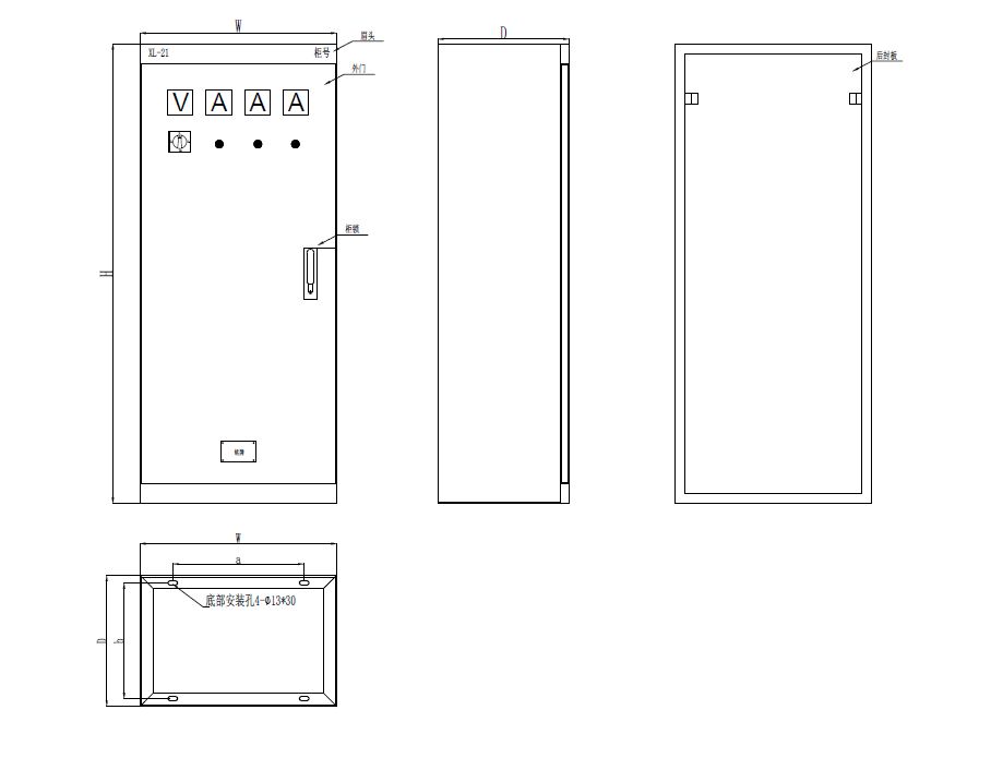 配电柜XL常规尺寸表(mm)