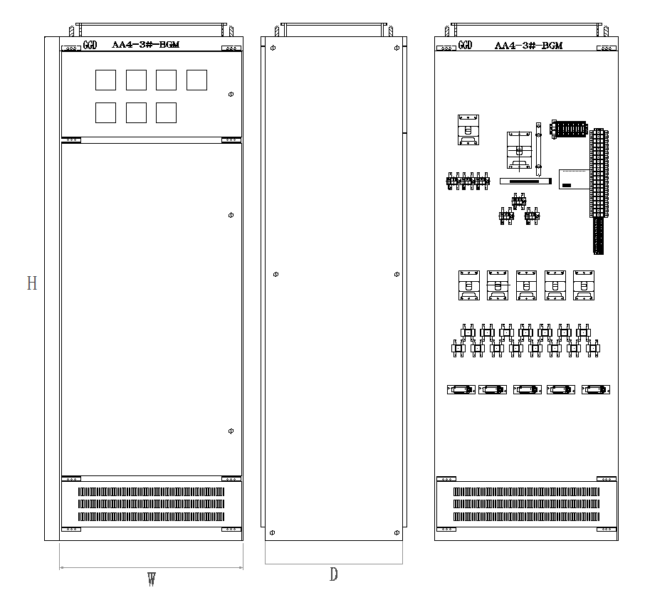 GGD系列低压配电柜是根据能源部主管上级,广大电力用户及设计部门的要求,本着安全、经济、合理、可靠的原则设计的新型低压配电柜。产品具有分段能力高,动热稳定性好、电气方案灵活,组合方便、系列型、实用性强、结构新颖、防护等级高等特点。可作为低压成套开关设备的更新换代产品使用。产品广泛适用于发电厂、变电站、厂矿企业等电力用户的交流50Hz,额定工作电压380V,额定工作电流至3150A的配电系统,作为动力,照明及配电设备的电能转换、分配与控制之用。