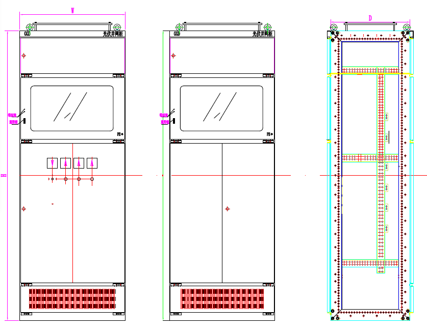 GGD(GF)系列光伏并网柜作为光伏电站的总出口存在于光伏系统中,是连接光伏电站和电网的配电装置,其主要作用是作为光伏发电系统与电网的分界点。对于低压并网的光伏电站,光伏并网柜中还可以加装计量、保护等功能器件。主要由防孤岛保护装置,并网开关、防雷器、温湿度控制器、电能计量装置和柜体附件等相关硬件组成。光伏并网柜主要用于110KV、35KV的集中式光伏并网接入系统和10KV、380V分布式光伏接入并网系统。