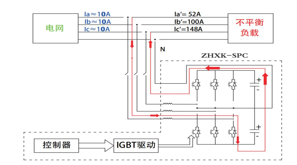ZHXK-SPC系列三相不平衡自动调节装置应用于0.4KV低压电力系统中,是一种用于治理配网三相不平衡、快速补偿无功功率和谐波,实时稳定系统电压,它能够根据配网用户由于不同时间段或不同负荷导致的配网三相不平衡电流,利用先进控制算法分离出不平衡电流的正负零序及无功,通过触发功率器件,使逆变器发出与之相反的抵消电流,达到消除不平衡及补偿无功的作用,优化电能质量、实现节能减排目的。