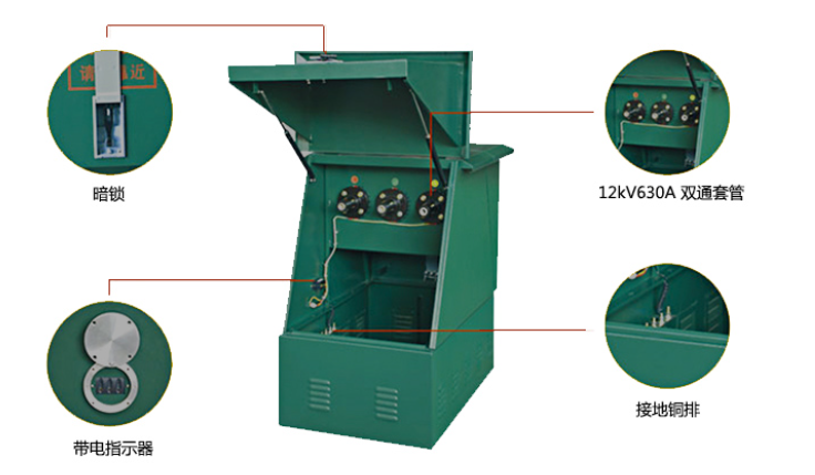 安全防护:全绝缘、全密封结构,无需绝缘距离,可安装电缆型故障指示器,便于迅速查找电缆故障,可靠保证人身安全;