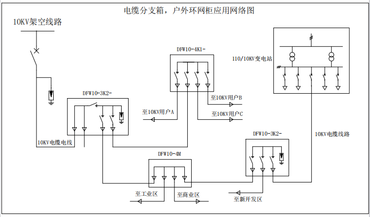 DFW-12系列高压电缆分支箱,广泛用于10KV电缆系统的节点连接,是电缆从开关柜出线后进行汇集与分接的主要电气设备。分支箱的电缆接头采用高等级绝缘的进口橡胶紧包覆绝缘,无裸露带电体;带开关的分支箱的开关均采用SF6绝缘负荷开关 。 DFW分支箱设计为户外免维护运行,安全可靠,其防护等级IP33~IP66,地下分接头可耐洪水淹浸。特别适合城市电网改造工程,可大大节省电气设备和电缆投资,提高供电可靠性。该产品广泛用于城市工业小区、住宅小区、商业中心、矿区和钢铁、汽车、石油、化工、水泥等大型企业以及其它场合的配电网;