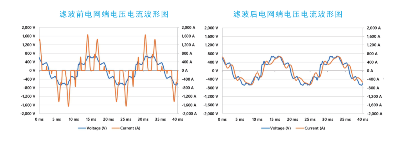 解决设备测谐波问题,满足IEEE-519谐波限值,THDi小于5%,保证设备的电能质量。